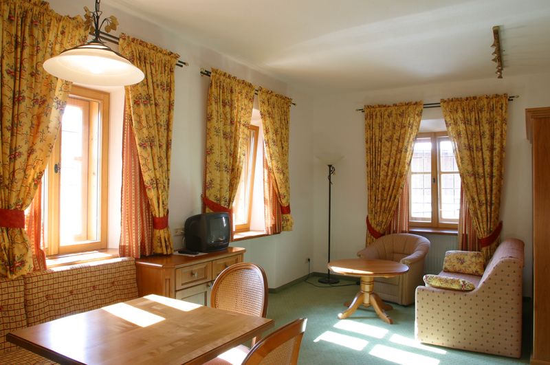 für 2 - 4 Personen, Schlafzimmer, extra Wohnzimmer mit Sitzecke,Badezimmer mit Waschbecken, Badewanne/ Dusche, WC, Fön, TV (86 Kanäle), WLan, NEU: Minibar, Telefon, Safe, Post-Rucksack, Post-Schirm, Badetasche für die Zeit Ihres Aufenthaltes mit Handtuch, Bademantel, Badeschuhe